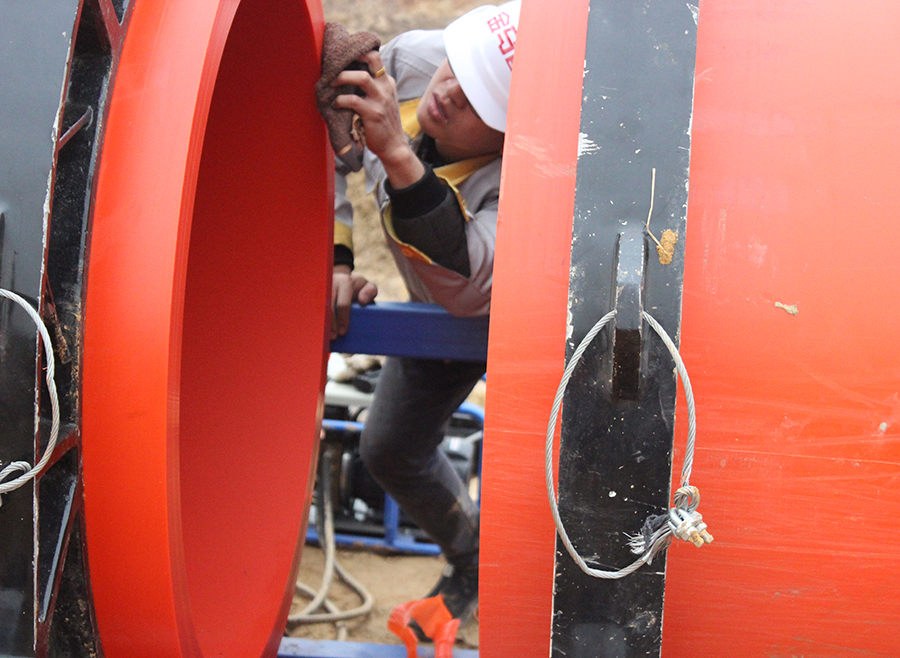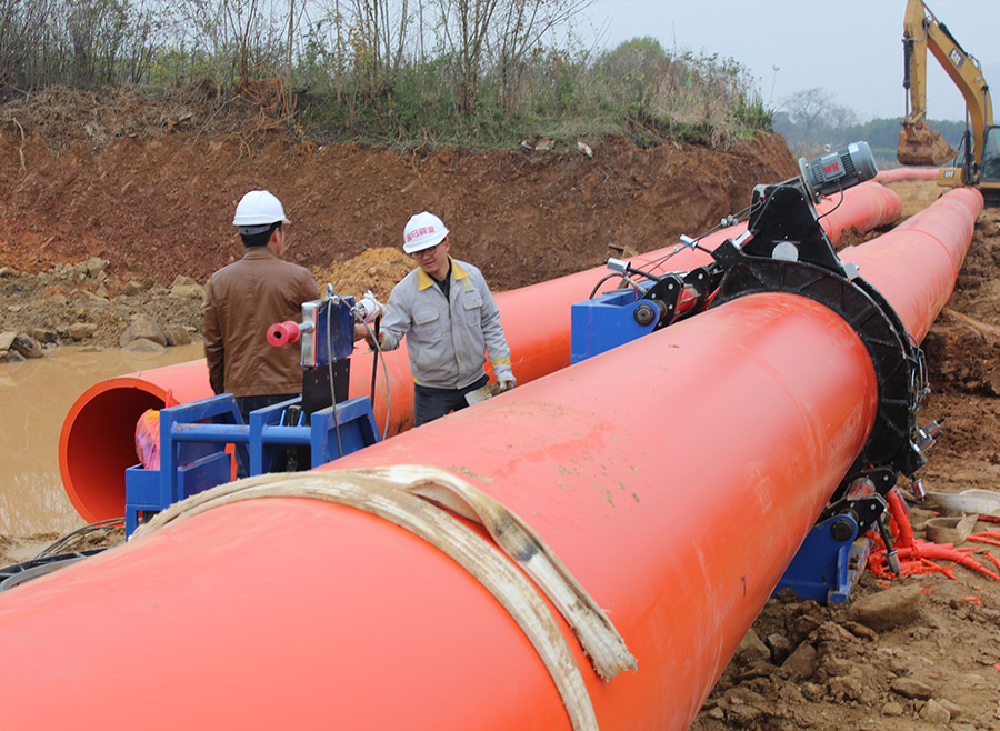 湖北金馬塑業(yè)向以上項(xiàng)目供應(yīng)及焊接施工DN1000mm及DN800mm等大口徑非開(kāi)挖鋪設(shè)用高密度聚乙烯(PE)排水管,所有管道采用非開(kāi)挖牽引施工工藝,其中DN1000mm的管道,在省內(nèi)實(shí)現(xiàn)了一次成功牽引到位zui大口徑和單段距離記錄近700米,為該項(xiàng)目總計(jì)供應(yīng)大口徑非開(kāi)挖管材近10000米。